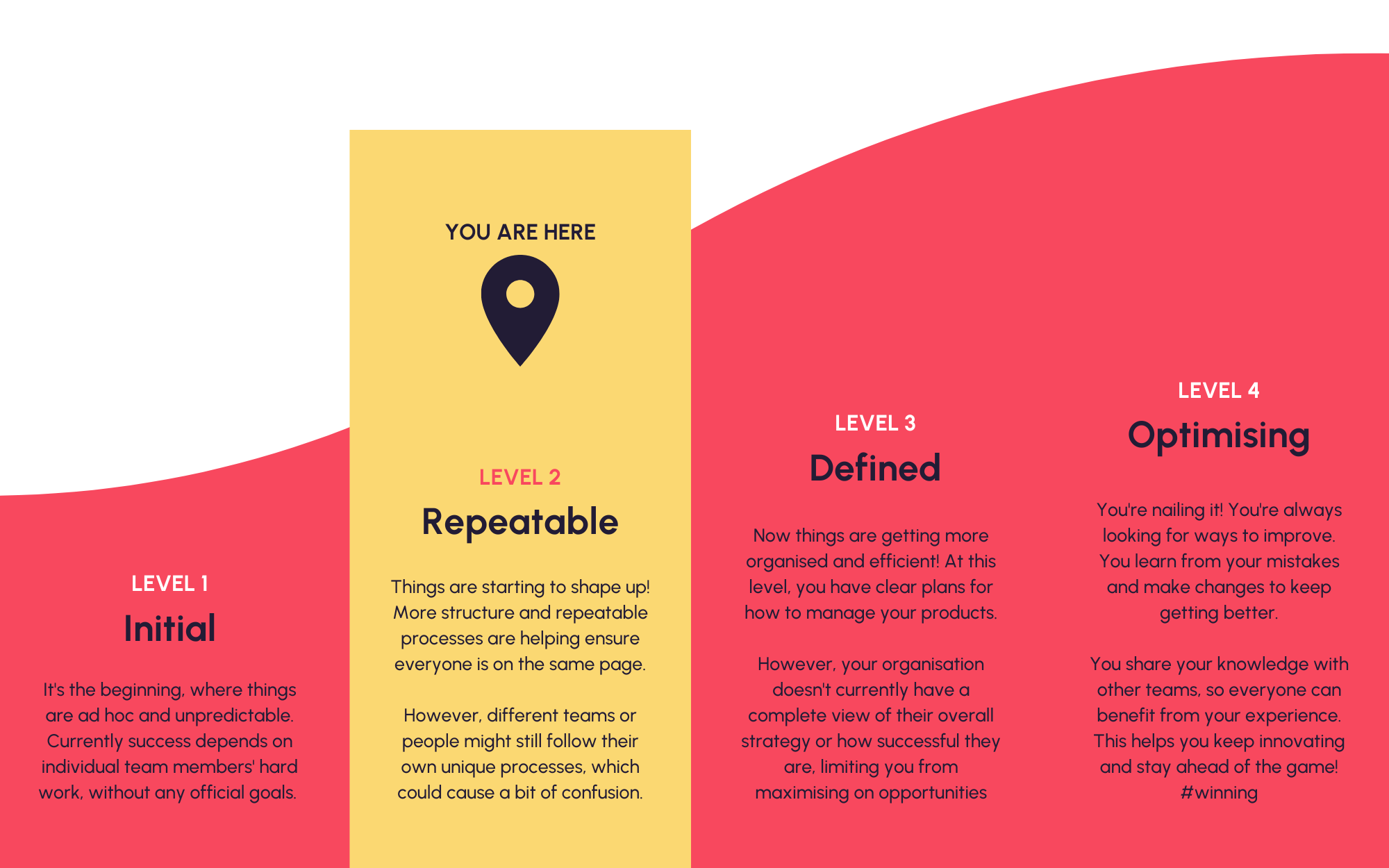 The Repeatable Product Level is essentially the second stage on your journey to better product delivery, and is where you start to see a pick up in momentum.